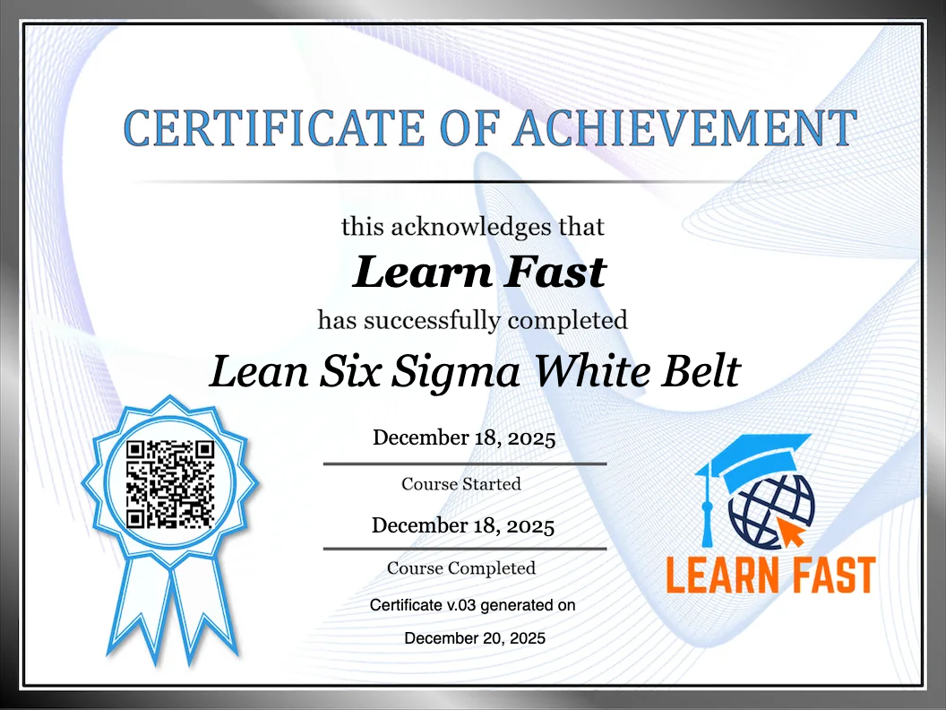 This post provides samples of certificates issued by Learn Fast so you can preview how they will look across different platforms. Click the link to view the certificate; it can be saved as an image and printed. A QR code can be scanned from a soft or hard copy, which will take you to Learn Fast website to verify the validity. Once the QR code is scanned, it will appear online, and the date will be updated to the current date.
